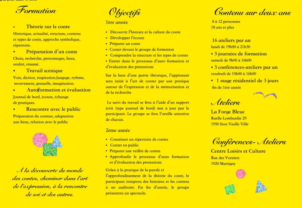 La formation propose d’entrer dans le monde du conte par des éléments théoriques et par des exercices pratiques. Il est abordé :